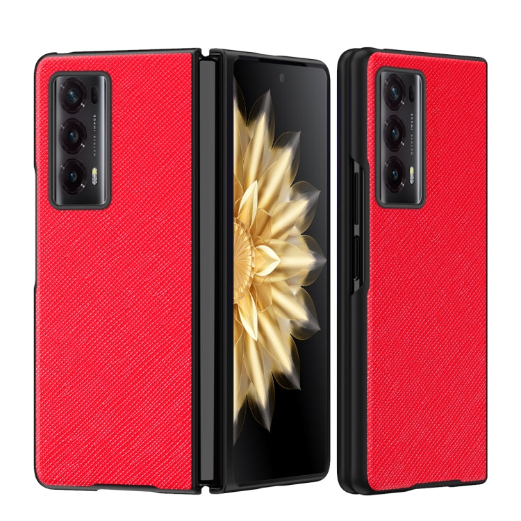 Estuche para Honor Magic V2 a Prueba de Golpes de Cuero de Grano Cruzado (Rojo)