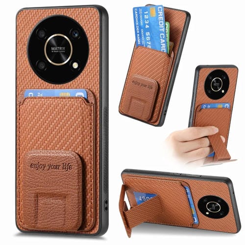 Funda para Honor Magic4 5G con Soporte Plegable y Bolsa para Tarjetas de Fibra de Carbono (Marrón)