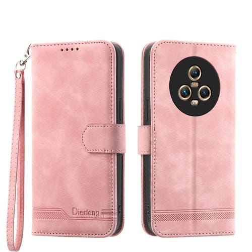 Funda para Honor Magic5 Dierfeng Dream Line TPU y Cuero PU para Teléfono (Rosa)