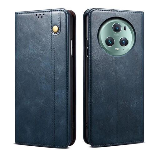 Funda de Cuero para Honor Magic5 Oil Wax Crazy Horse Texture (Azul)