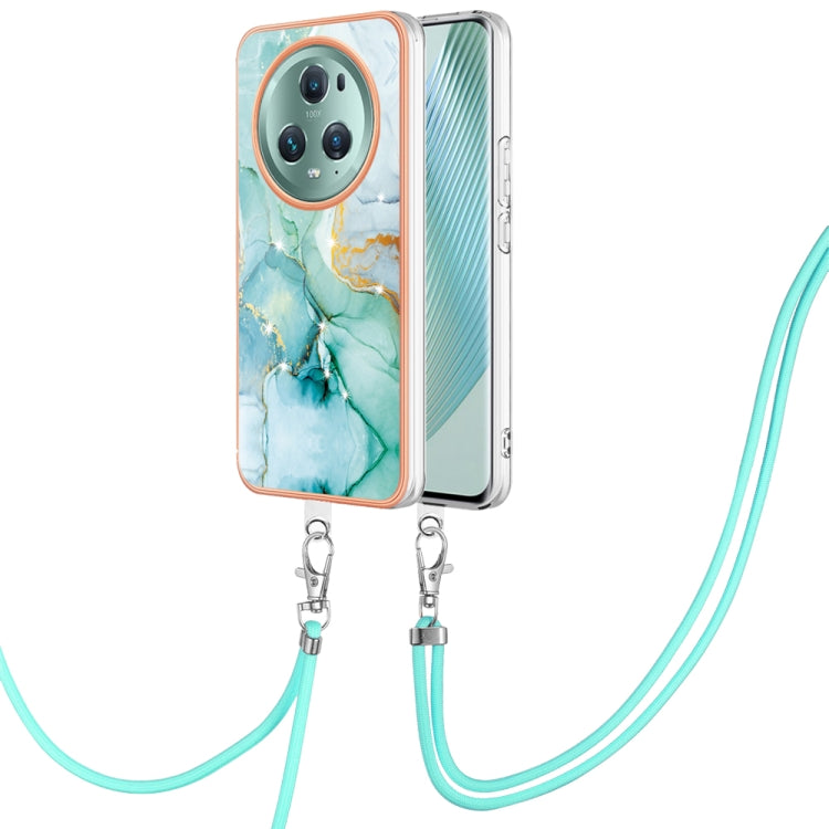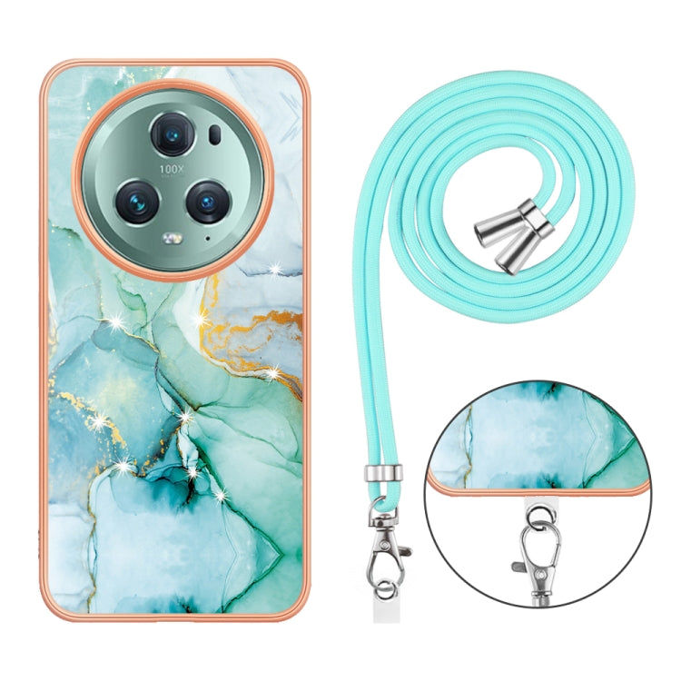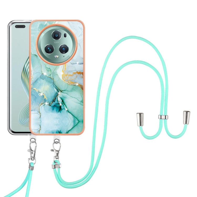 Estuche para Honor Magic5 Pro IMD Doble Cara Mármol Galvanizado con Cordón (Verde)