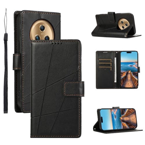 Funda para Honor Magic5 PU con Línea en Relieve y Textura de Cuero Genuino (Negro)