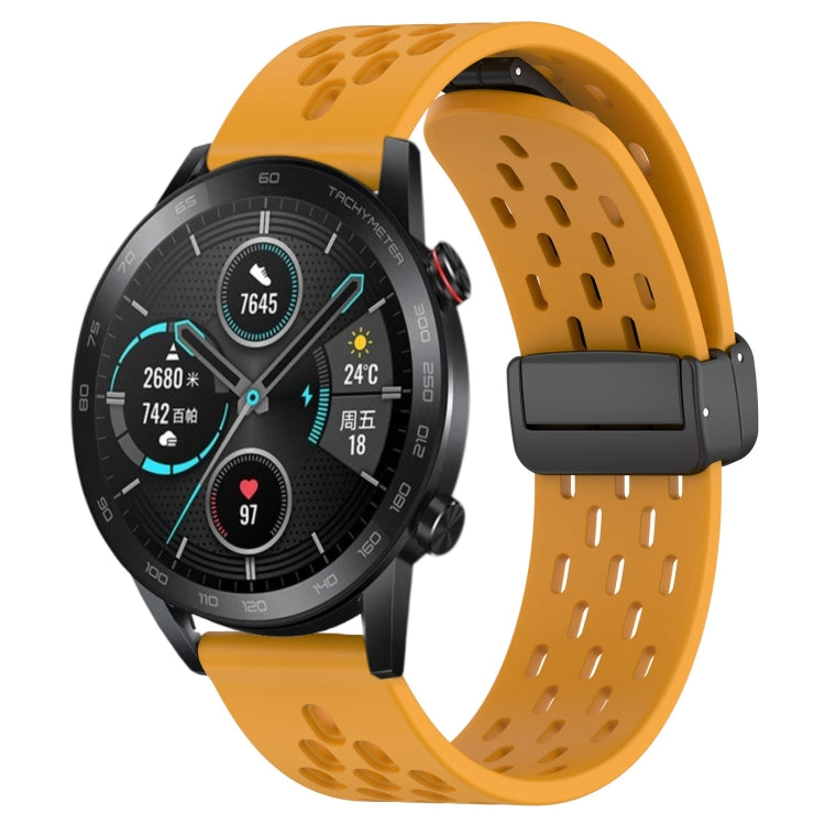 Correa de Silicona para Honor Magicwatch2 42mm 20mm con Cierre Magnético Plegable (Amarillo)