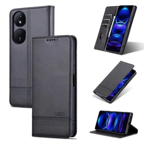 Funda para Honor Play 50 Plus Azns de Cuero con Tapa Magnética y Textura de Pantorrilla (Negro)