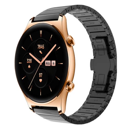 Correa de Aleación para Honor Watch GS 3 con Hebilla de Mariposa y Pintura de Una Cuenta 22mm (Negro)