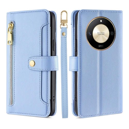 Funda de Cuero para Honor X50 5G Lite con Billetera, Cremallera y Textura de Oveja (Azul)