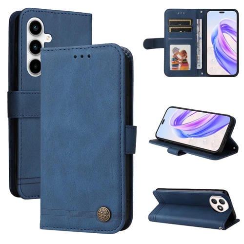 Funda de Cuero para Honor X50I con Botón de Metal y Skin Feel Life Tree (Azul)