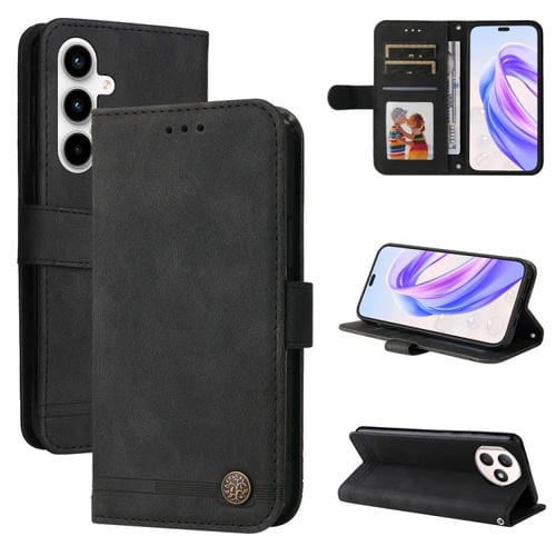 For Honor X50i+ Skin Feel Life Tree Leather Phone Case with Metal Button(Black)