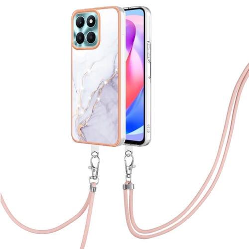 Estuche para Teléfono Honor X6A Imd Doble Cara Mármol Galvanizado con Cordón (Blanco)