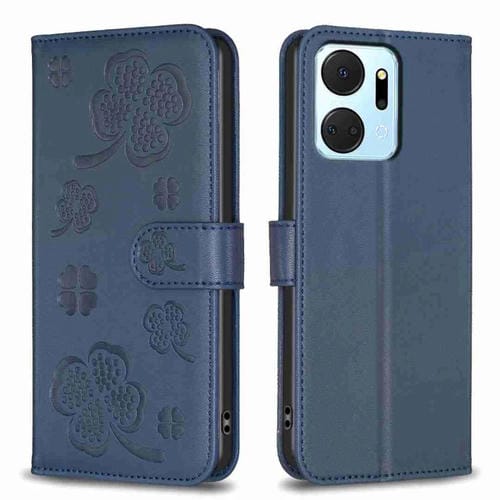 Funda para Teléfono Honor X7A Cuero con Relieve de Cuatro Hojas (Azul)