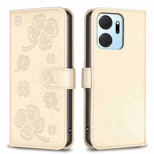 Funda para Honor X7A de Cuero con Relieve de Cuatro Hojas (Dorado)