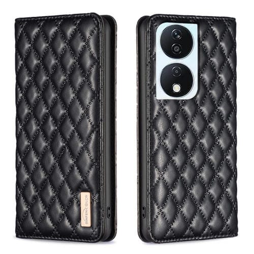 Funda para Honor X7B con Tapa de Cuero Magnético y Diseño Diamond Lattice (Negro)