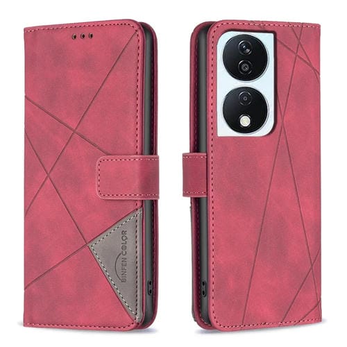 Funda para Honor X7B Cuero Textura de Rombo con Hebilla Magnética (Rojo)