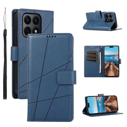 Funda para Honor X8A con Línea en Relieve y Textura de Cuero Genuino PU (Azul)