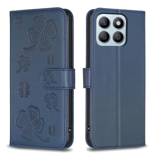 Funda para Teléfono Honor X8B Cuero con Relieve de Cuatro Hojas (Azul)