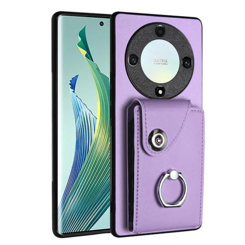 Funda para Honor X9A y Magic5 Lite de PU con Soporte para Anillo y Bolsa para Tarjeta (Púrpura)