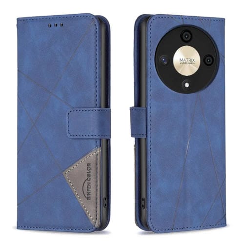 Funda para Honor X9B Magic6 Lite 5G de Cuero con Textura de Rombo y Hebilla Magnética (Azul)