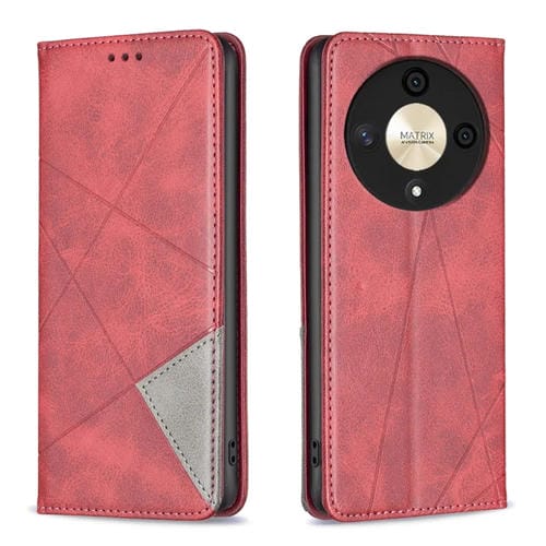 Funda para Honor X9B y Magic6 Lite 5G de Cuero Magnético con Textura de Rombo (Rojo)