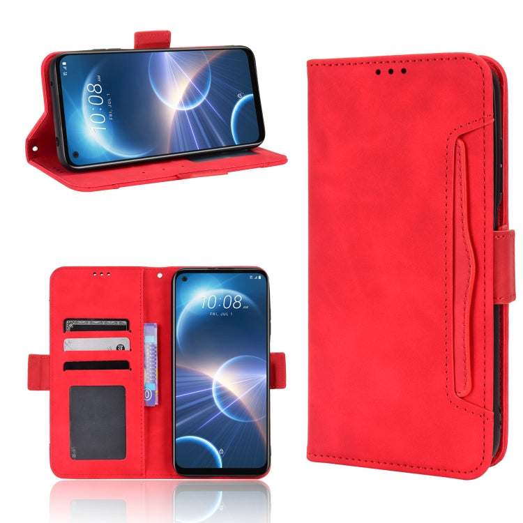 Funda de Cuero para HTC Desire 22 Pro con Ranuras para Tarjetas y Textura Skin Feel Calf (Rojo)