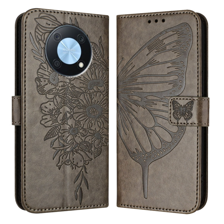 Funda de Cuero para Huawei Enjoy 50 Pro 4G y Nova Y90 con Mariposa en Relieve (Gris)