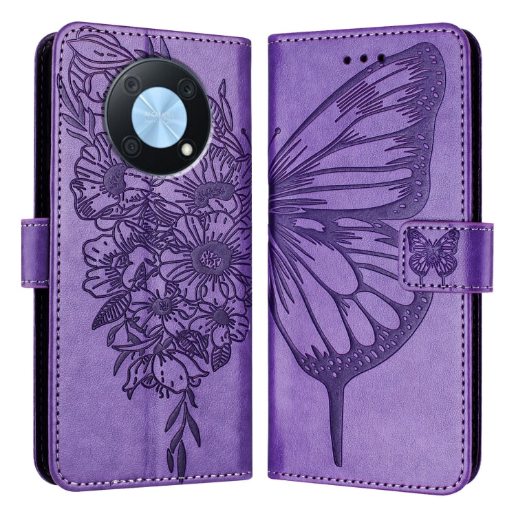 Funda de Cuero Huawei Enjoy 50 Pro 4G Nova Y90 con Mariposa en Relieve (Púrpura)