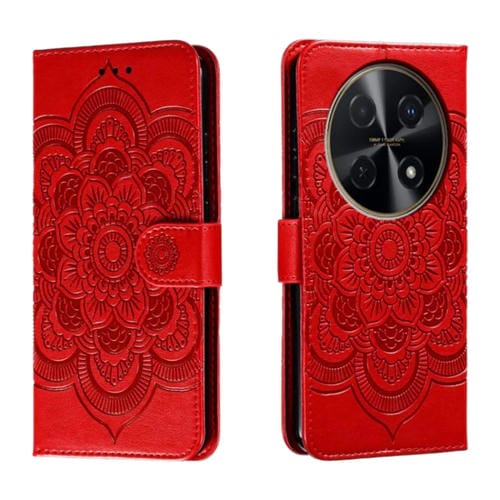 Funda de Cuero para Huawei Enjoy 70 Pro con Patrón en Relieve Sun Mandala (Rojo)