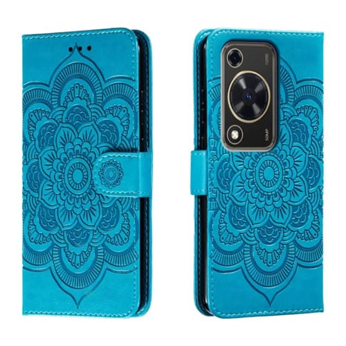 Funda de Cuero para Huawei Enjoy 70 con Patrón En Relieve Sun Mandala (Azul)