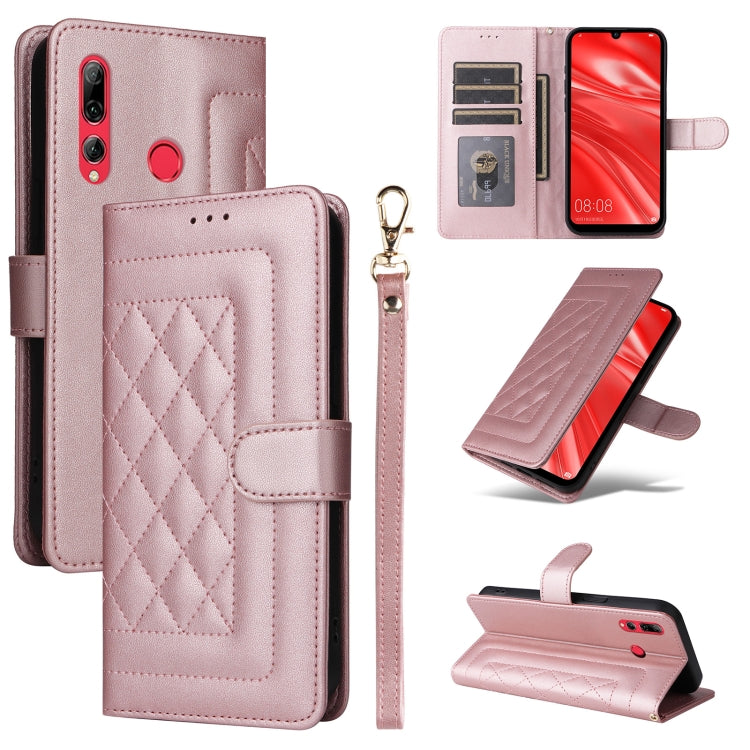 Funda de Cuero con Tapa para Huawei Enjoy 9S Diamond Lattice (Oro Rosa)