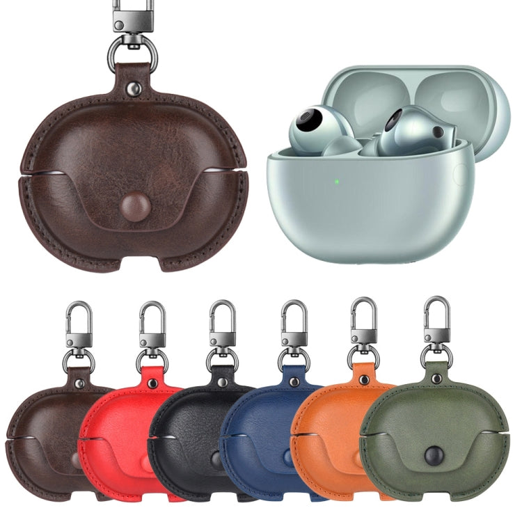 Funda Protectora de Cuero para Huawei Freebuds Pro 3 Business con Gancho (Marrón Claro)