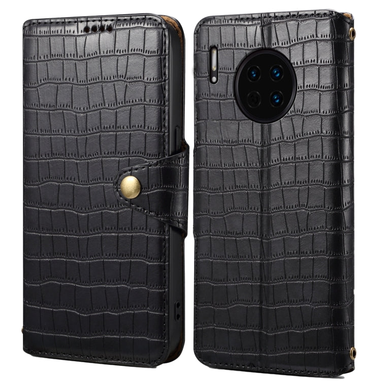 Funda para Huawei Mate 30 Denior Cuero con Borde de Aceite y Textura de Cocodrilo (Negro)