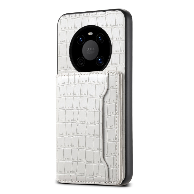 Estuche para Huawei Mate 40 con Diseño de Bolsa para Tarjetas y Textura de Cocodrilo (Blanco)