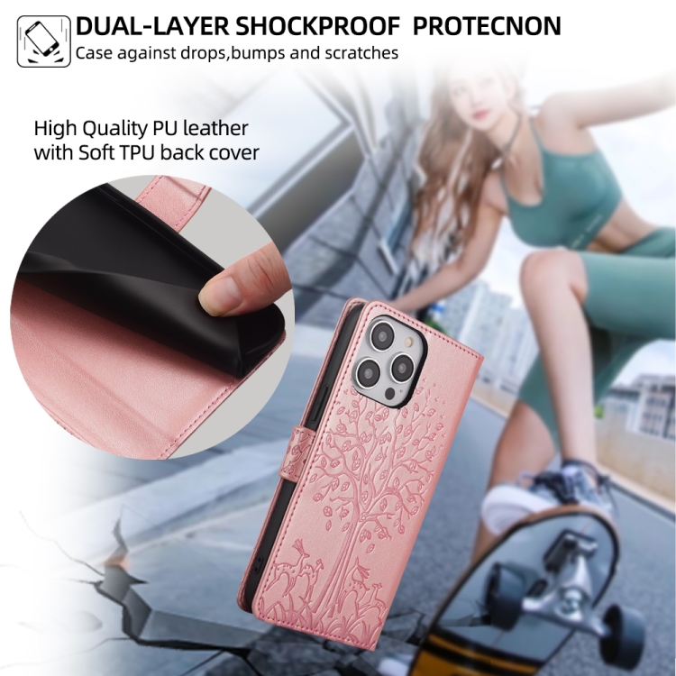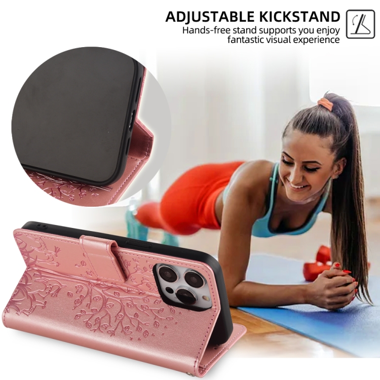 Funda de Cuero para Huawei Mate 40 Pro con Relieve de Árbol y Ciervo (Oro Rosa)