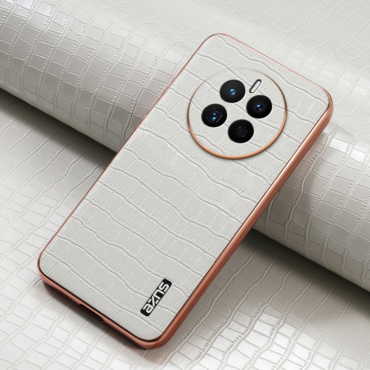 For Huawei Mate 50/50E AZNS Crocodile Texture Electroplated Frame Phone Case(White)