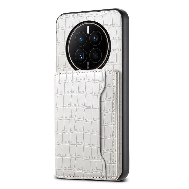 Estuche para Huawei Mate 50 con Diseño de Bolsa para Tarjetas y Textura de Cocodrilo (Blanco)