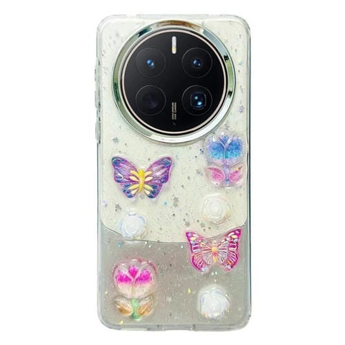 - 1x Estuche TPU para Huawei Mate 50 con Mariposas de Cristal Colorido Tridimensional (Flores de Mariposa)