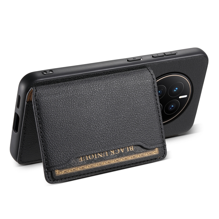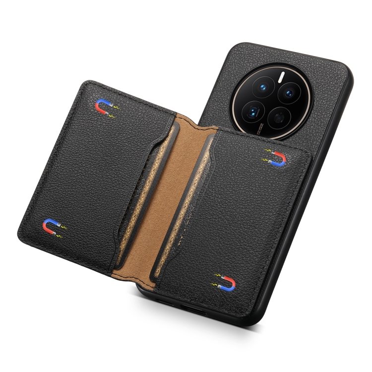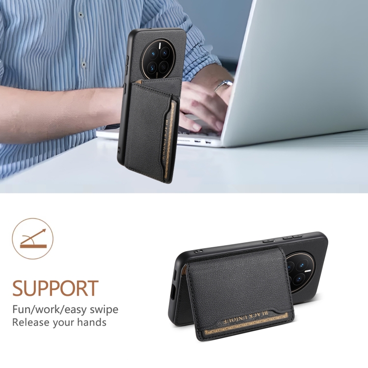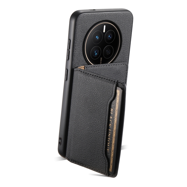 Funda para Huawei Mate 50 con Diseño de Bolsa para Tarjetas y Textura de Pantorrilla (Negro)