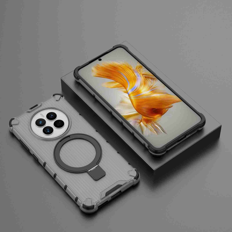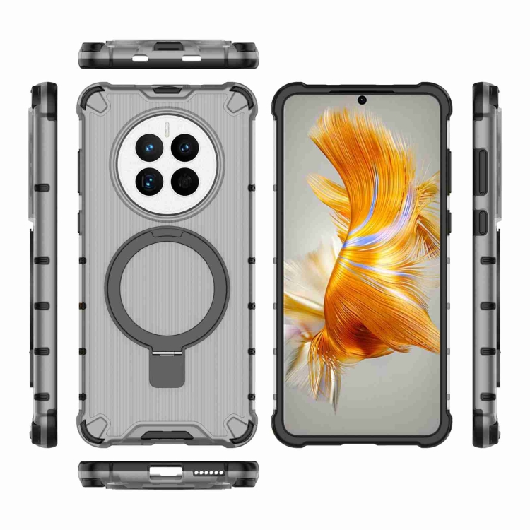 Funda para Huawei Mate 50 con Soporte y Rejilla a Prueba de Golpes (Negro Transparente)