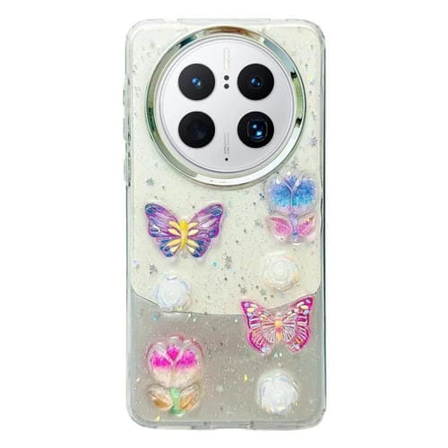 Estuche TPU para Huawei Mate 50 Pro con Mariposas de Cristal Colorido Tridimensional (Flores de Mariposa)