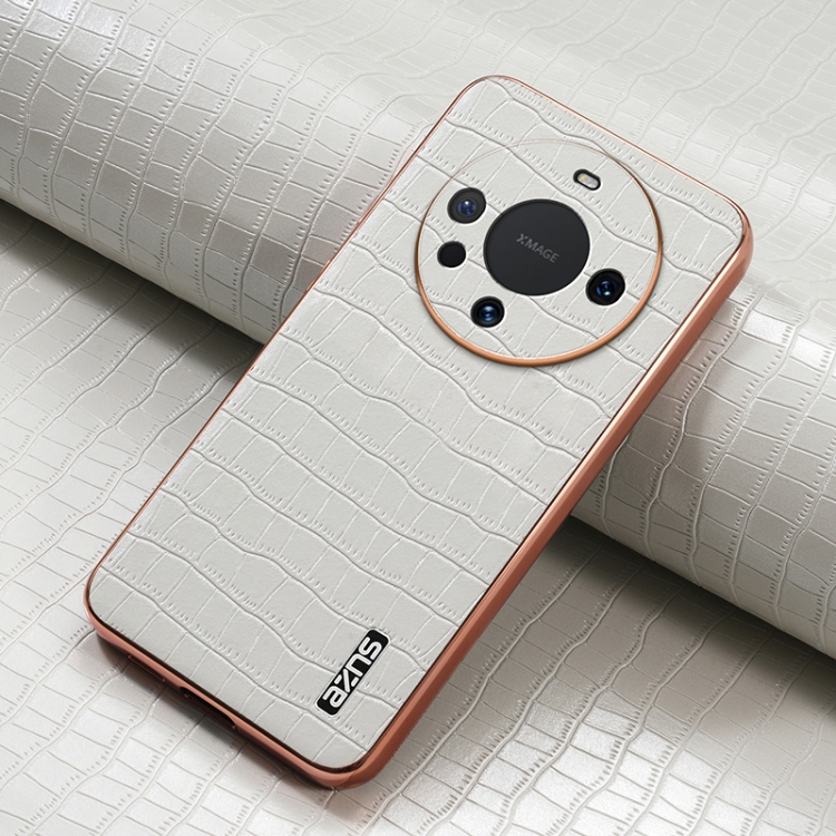 For Huawei Mate 60 AZNS Crocodile Texture Electroplated Frame Phone Case(White)