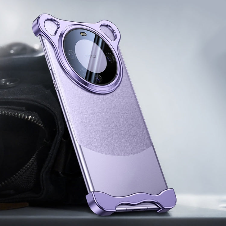 Estuche para Huawei Mate 60 con Almohadilla de Esquina de Metal sin Marco y Película para Lentes (Púrpura)