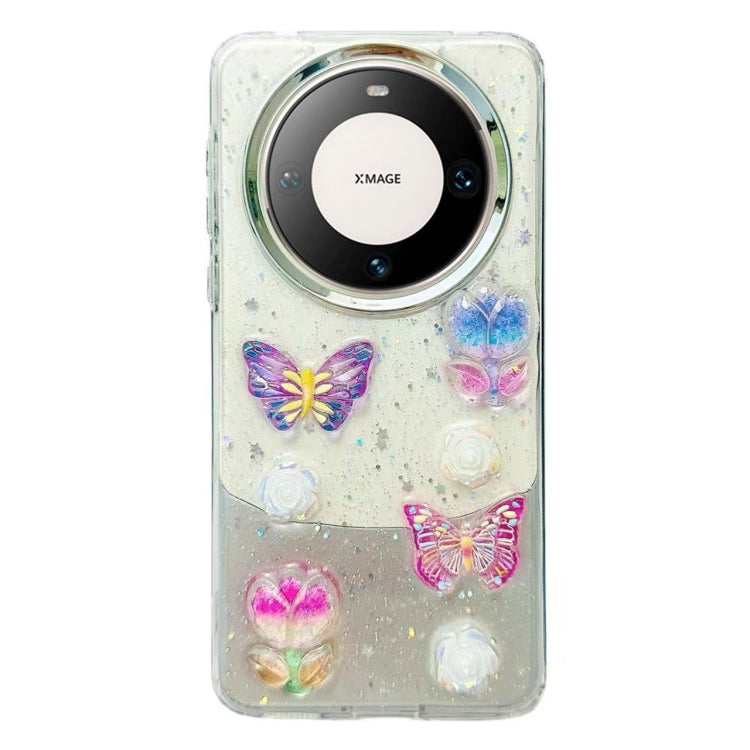 Estuche para Huawei Mate 60 de TPU con Mariposas de Cristal Colorido Tridimensional (Flores de Mariposa)