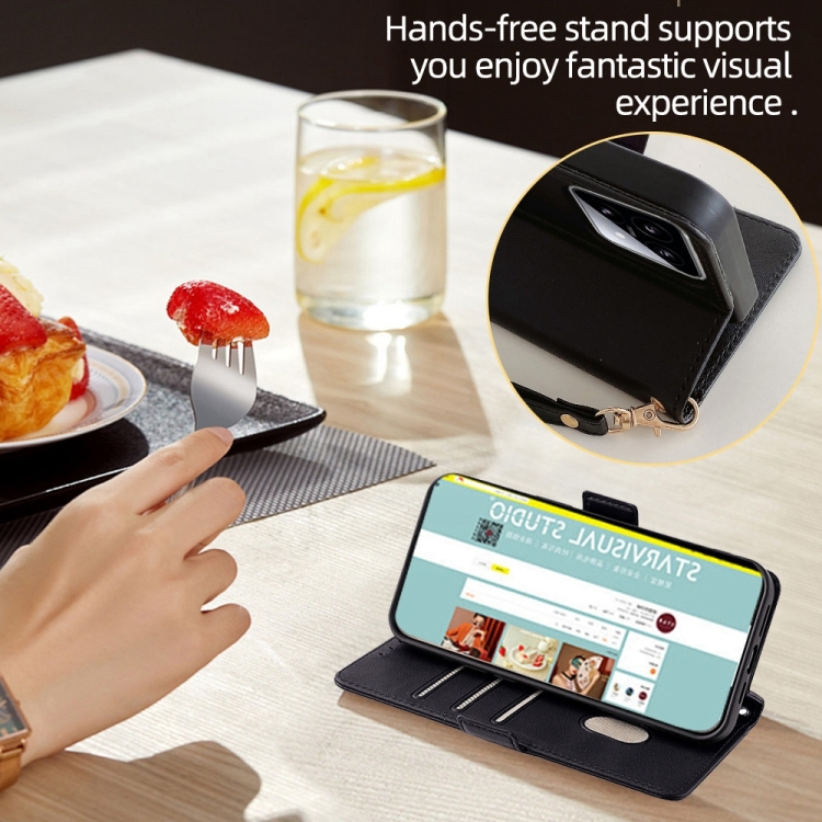 Funda de Cuero para Huawei Mate 60 Pro+ y 60 Pro con Cadena Cruzada (Negro)