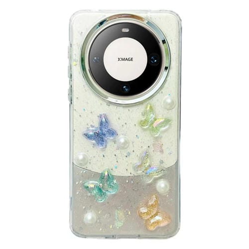 - 1x Estuche TPU para Huawei Mate 60 Pro con Mariposa de Cristal Colorido Tridimensional (Mariposa Perla)