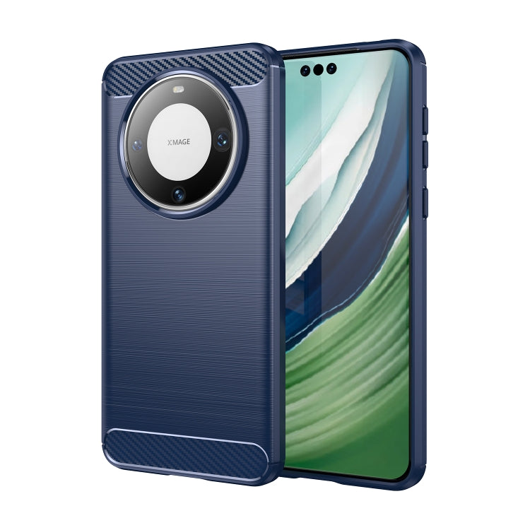 Funda de Teléfono Huawei Mate 60 Pro TPU Fibra de Carbono Textura Cepillada (Azul)