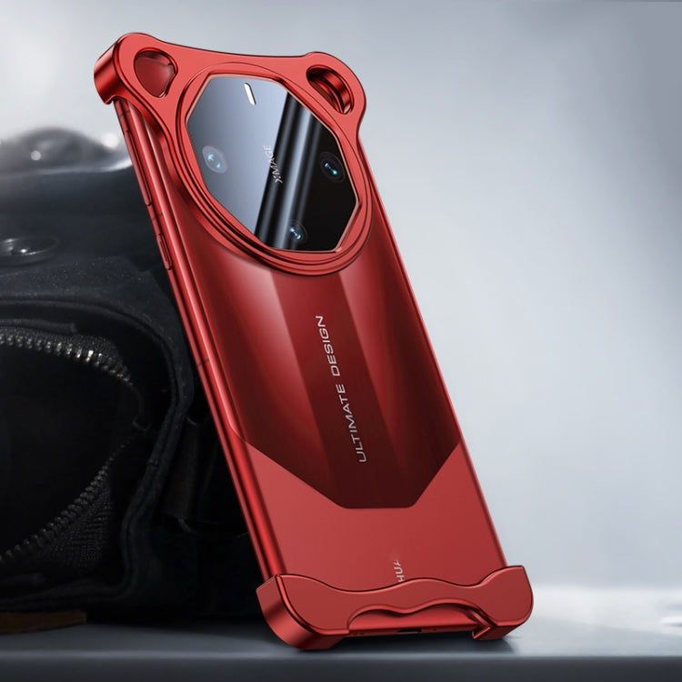 Estuche para Huawei Mate 60 Rs Ultimate con Almohadilla de Esquina de Metal y Película para Lentes (Rojo)