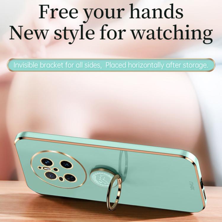 Funda TPU Xinli para Huawei Mate 70 con Borde Recto 6D Galvanizado y Soporte de Anillo (Negro)