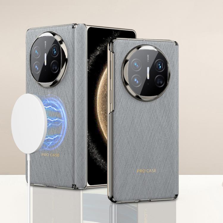 Funda para Huawei Mate X6 Gkk Magsafe de Cuero con Bisagra Ultrafina (Gris Brocado Plateado)