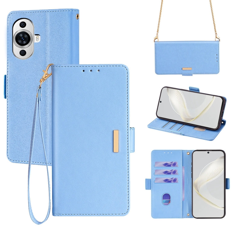 Funda de Cuero con Cadena Cruzada para Huawei Nova 11 4G (Azul)