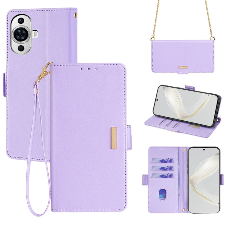 Funda de Cuero para Huawei Nova 11 4G con Cadena Cruzada (Púrpura)
