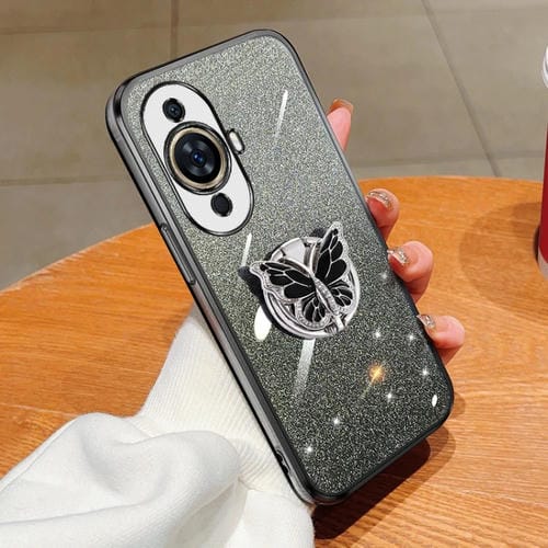 - 1x Funda para Huawei Nova 11 TPU con Soporte de Mariposa y Brillo Degradado (Negro)